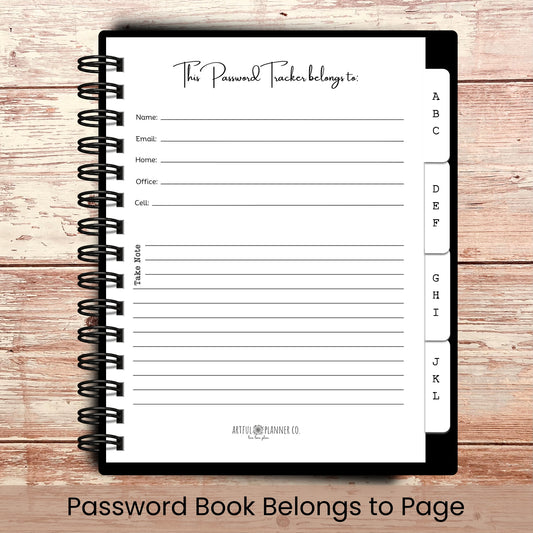 The personalization was beautiful as is the font style, Rye. This planner has everything he needs. Monthly calendar; week by week pages; note pages; password pages.